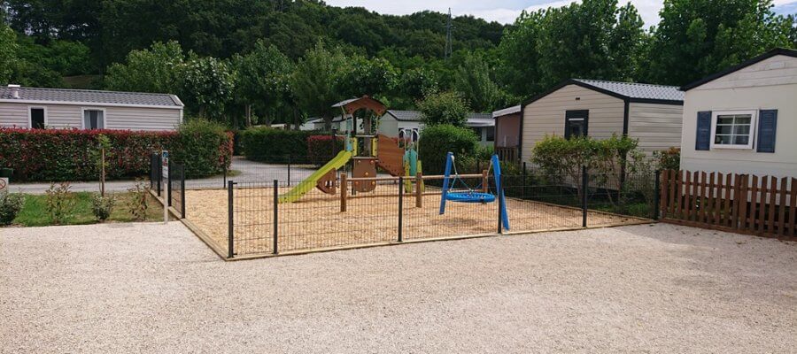 Ofrecemos campings sombreados y alojamientos en casas rodantes.
